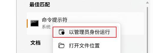 - 打开 开始菜单 → 搜索 cmd,右键 “命令提示符”,选择 “以管理员身份运行”。