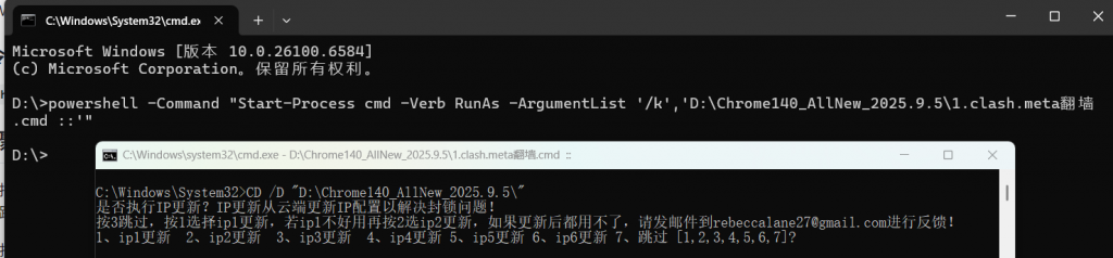 powershell -Command "Start-Process cmd -Verb RunAs -ArgumentList '/k','D:\Chrome140_AllNew_2025.9.5\1.clash.meta翻墙.cmd ::'"